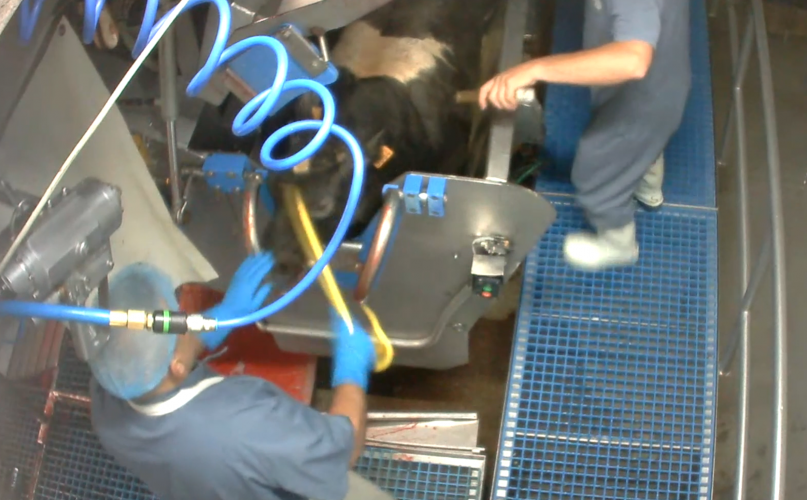 In de beelden is te zien hoe kalveren routinematig worden bewerkt met een elektrische veedrijver: op het hoofd, het lichaam en tegen de anus. Dieren worden natgespoten om de intensiteit van de schok te vergroten en zelfs met de veedrijver bewerkt als ze onmogelijk vooruit kunnen bewegen.