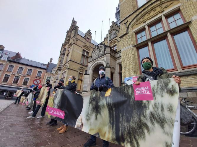 - Onze demonstratie bij het slachthuis in Tielt werd door de gemeente verboden. Wij trokken naar de Raad van State en kregen gelijk.