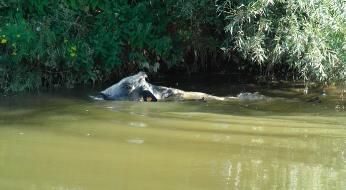De malafide boer ging uiterst hardhandig te werk en negeerde het protest van de hulpdiensten toen hij een staalkabel om de nek van de koe bond en haar met zijn tractor uit de Dender sleurde.