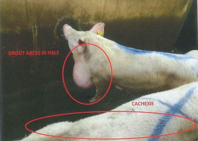 Hebben ze de begeleidende foto’s dan niet gezien of de rapporten gelezen? Een voetbal-groot abces in de nek groeit niet tijdens een paar uur transport, noch een navelabces tot op de grond.