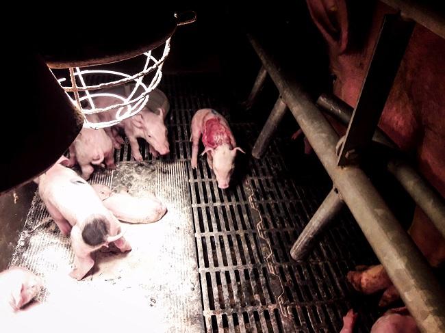 Undercovermedewerker ‘Tom’ werd diep geraakt door een ontveld biggetje wat de volgende dag nog met dezelfde verwonding rond strompelde. “Hartverscheurend waren de momenten dat moedervarkens uit alle macht uit de kraamkooi wilden breken om hun afgepakte biggen terug te krijgen. Maar misschien nog wel vreselijker vond ik de moedervarkens die apathisch in hun kraamkooi naast hun (doodgeboren) biggen lagen.”