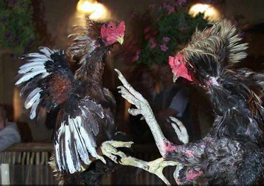Bij hanengevechten vechten hanen tot de dood in een arena. Dit is een staaltje van middeleeuwse, verschrikkelijke dierenmishandeling.