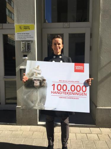 Naar aanleiding van Wereldproefdierendag overhandigde Animal Rights op vrijdag 23 april 2021, 100.000 handtekeningen voor een verbod op het gebruik van alle apen in dierproeven aan Ben Weyts, de Vlaamse minister van Dierenwelzijn. "We willen het aantal dierenproeven maximaal naar beneden halen”, klonk het toen.