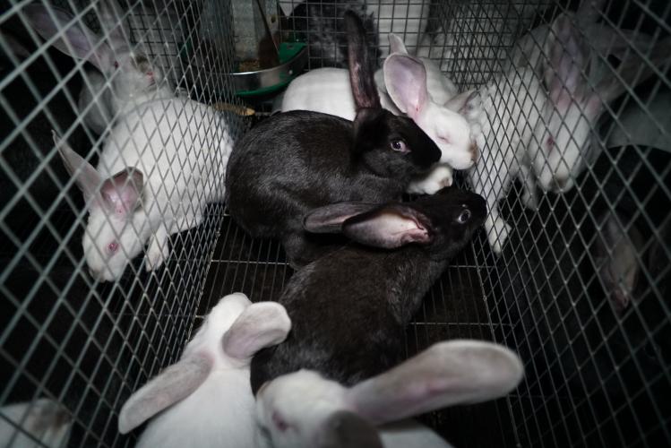 Veel Nederlanders en Belgen hebben konijn definitief van het menu geschrapt. Ondanks het gebrek aan maatschappelijk draagvlak worden in Nederland en België nog steeds ‘vleeskonijnen’ gefokt.