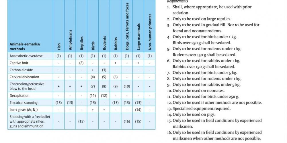 Wist je dat er maar liefst 9 wettelijk toegestane methoden bestaan, over hoe proefdieren gedood mogen worden? Daaronder vallen vergassen, onthoofden, het breken van de nek en een klap op de kop. Bovendien is er een discussie gaande om nieuwe dodingsmethoden in te voeren zoals bevriezing.