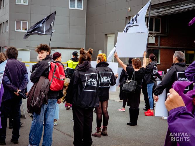 Eind februari voerde Animal Rights actie bij een van de twee konijnenslachterijen in België waar jaarlijks 1,2 miljoen jonge konijntjes van 10-12 weken oud de dood tegemoet gaan. Ze worden in weer en wind aangevoerd in trucks, opeengepakt in kratten. Een deel van de konijnen overleeft dit transport niet en komt dood of zwaargewond aan in het slachthuis.