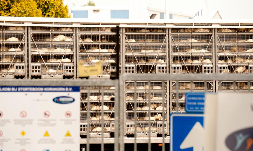 Op 28 april 2017 sterft 1,24% van een partij vleeskuikens uit Elshout, Noord Brabant, onderweg naar slachthuis Plukon Moeskroen; de kratten zijn overbeladen.