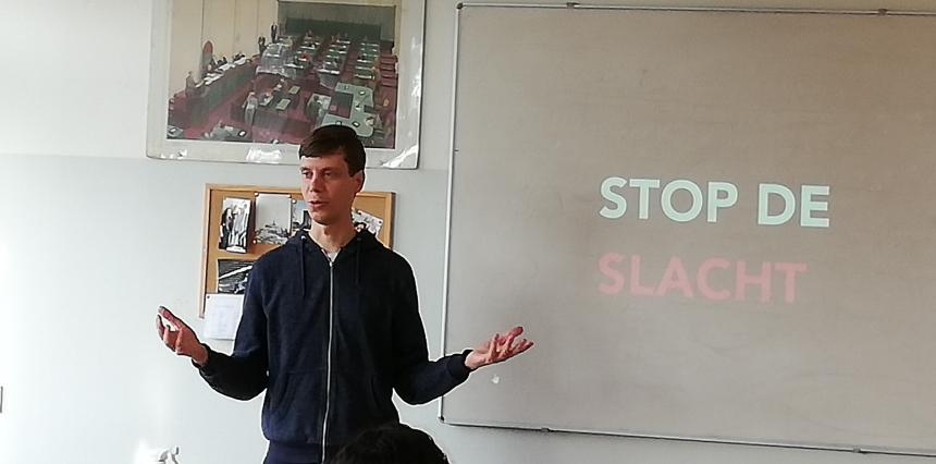 Ondanks de coronacrisis bezoekt Animal Rights nog steeds scholen voor gastlessen. Ook geven we (online) lezingen over o.a. dierenrechten, de impact van dierlijke producten op het milieu en plantaardige voeding. Eind november gaven we de vijf gastlessen waar we in dit artikel aan refereren. Eveneens in de laatste week van november gaven we een online lezing over de ecologische voetafdruk van voedsel voor de studievereniging van de opleiding Diermanagement in Leeuwarden. In de eerste week van december gaven we in een les een online interview over de problemen van de intensieve veehouderij en bekeken leerlingen beelden die Animal Rights gemaakt had. Vooraf geloofden veel leerlingen nog in 'goede' boerderijen: dat er goede en slechte boerderijen zijn. Wij willen laten zien dat de veehouderij voor dieren nooit goed is: ze worden altijd als product gebruikt en op jonge leeftijd geslacht.