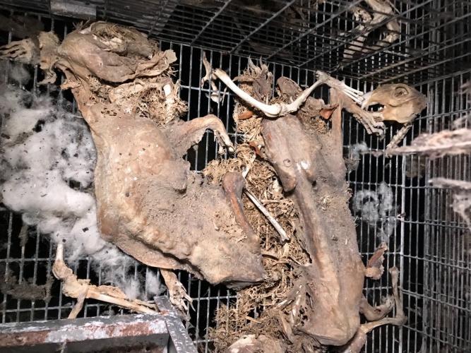 November 2019 deed een Animal Rights onderzoeksteam na een tip een gruwelijke ontdekking in het Vlaams-Brabantse Grimbergen. In een vervallen schuur achter een dichtgetimmerde woning aan de Driesstraat (Humbeek) troffen zij de gemummificeerde lijken aan van vele tientallen konijnen die in hun batterijkooien gecrepeerd waren. Diezelfde week legde Animal Rights een klacht van dierenmishandeling neer bij de politie.