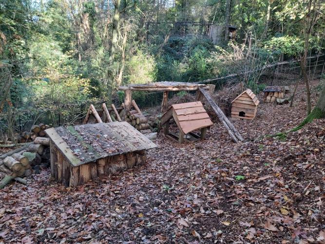 Ondertussen werkten de staf en vrijwilligers van Animal Rights hard om de poolvossen een nieuw thuis te geven bij SOS Wilde Dieren in Geraardsbergen. Een bestaand verblijf van ruim 600 vierkante meter in een bosrijke omgeving werd er omgetoverd tot een leefomgeving waar deze vossen zich kunnen uitleven en de best mogelijke verzorging zullen krijgen. Daarom werd de bestaande omheining hersteld en verstevigd. We richtten ook speciale schuilplaatsen in voor de nieuwe bewoners. Alles hebben we in het werk gesteld om het leven van deze dieren er zo veilig en aangenaam mogelijk te maken. Animal Rights is SOS Wilde Dieren zeer dankbaar voor hun bereidheid om deze dieren op te nemen.