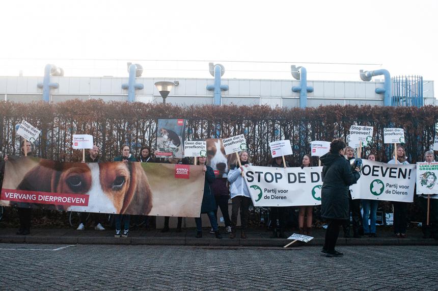 Animal Rights demonstreerde op woensdag 11 januari samen met Partij voor de Dieren Den Bosch voor de poorten van Charles River. Het dierproevenbedrijf heeft van de minister een vergunning gekregen om de komende vijf jaar 649.495 dieren te gebruiken in giftigheidstesten. Animal Rights wil dat de minister de vergunning intrekt en dat Charles River zich gaat toeleggen op proefdiervrije innovatie.