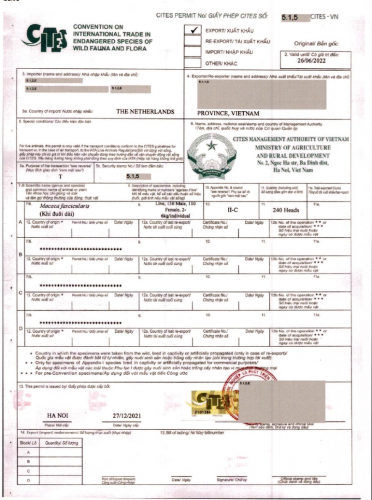 Op 29 maart 2022 geeft de RVO het CITES importcertificaat af.