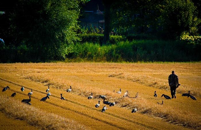 De jager had zich opgesteld pal naast de Oeverlanden. Dit natuurgebied strekt zich uit in het zuidoosten van Zuid-Holland, van Numansdorp tot Strijensas. Het is onderdeel van Natura 2000, een Europese netwerk van bijzondere beschermde natuurgebieden.1 Ganzen gebruiken dit beschermde natuurgebied als rustplaats en vliegen twee keer per dag naar de weiden en akkers waar voedsel te vinden is.