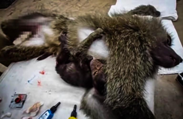 Hochmuth: “Gezonde bavianen worden ziek gemaakt en ingezet in vruchtbaarheidsonderzoek: eierstokken worden bij de vrouwelijke bavianen weggesneden, ingevroren en opnieuw teruggeplaatst. Vervolgens wordt bij het vrouwtje twee wekenlang een mannetje geplaatst in de kooi, in de hoop dat deze haar bevrucht.”
