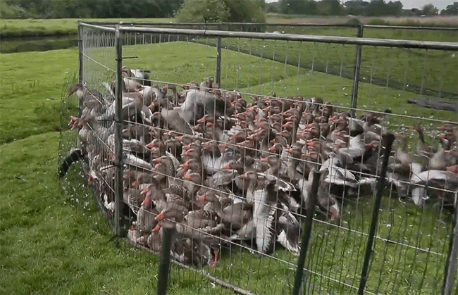 Animal Rights directeur Robert Molenaar: “Tijdens het opdrijven raken de ganzen in blinde paniek en vertrappen elkaar. Deze lijdensweg is onacceptabel.”