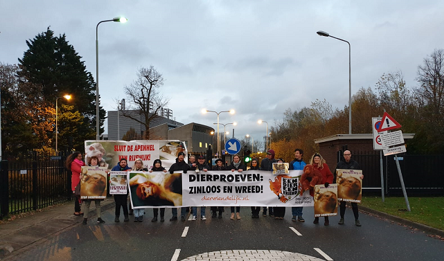 Animal Rights en Een DIER Een VRIEND voeren samen actie voor de sluiting van het apentestcentrum BPRC. De eerstvolgende actie is op 17 december.