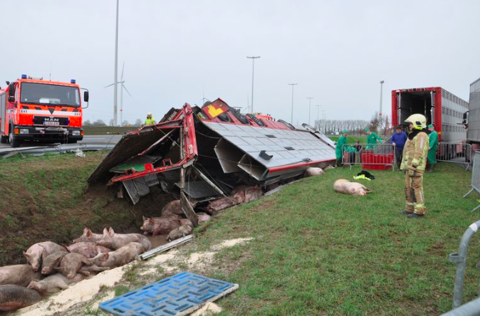 Op dinsdag 11 oktober is een chauffeur van een Nederlands transportbedrijf met zijn vrachtwagen vol varkens gekanteld in het Duitse Meppen. Vermoedelijk verloor hij de macht over het stuur tijdens het maken van een bocht. In de vrachtwagen zaten 195 varkens, waarvan zo’n 100 varkens het ongeluk niet hebben overleefd. De vrachtwagenchauffeur is zwaargewond naar het ziekenhuis vervoerd.7