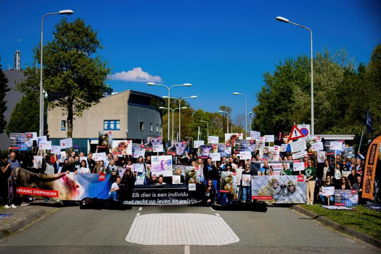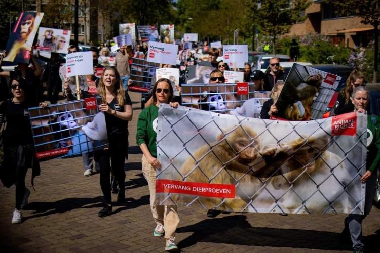 Ongeveer 200 personen liepen zondag 24 april, Wereldproefdierendag, door de straten van Rijswijk. Met borden en leuzen gaven ze een duidelijk signaal dat het tijd is voor een einde aan dierproeven. De mars eindigde bij het BPRC, het grootste apenlab van Europa waar ongeveer 1000 apen worden ingezet voor dierproeven.1 Er waren speeches van Robert Barker en Carla van Viegen van de Partij voor de Dieren en Janneke Hogervorst van Peta.