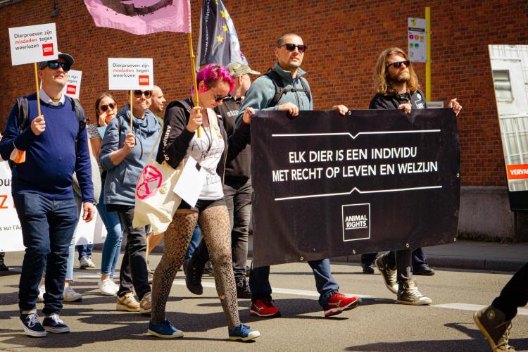 Zo'n 150 personen namen zondagnamiddag in Leuven deel aan een demonstratie tegen dierenproeven. In Leuven bevindt zich immers nog het enige proefdierencentrum dat nog dierproeven op apen uitvoert.12