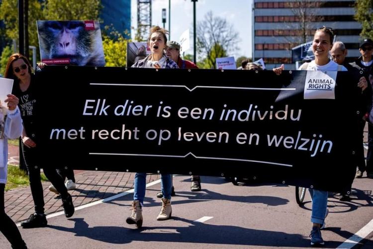 Animal Rights organiseerde afgelopen zondag, naar aanleiding van Wereldproefdierendag marsen in Rijswijk en Leuven. Dat Animal Rights Rijswijk en Leuven had uitgekozen, is geen toeval. In Rijkswijk zit het grootste apenlab van Nederland en in Leuven bevindt zich het enige proefdierencentrum in België dat nog dierproeven op apen uitvoert."
