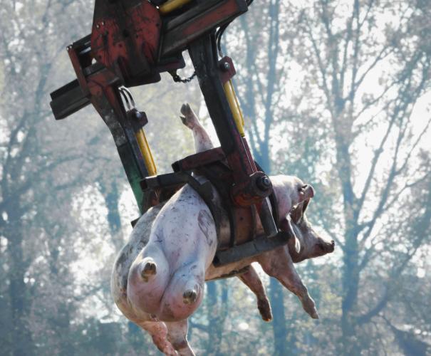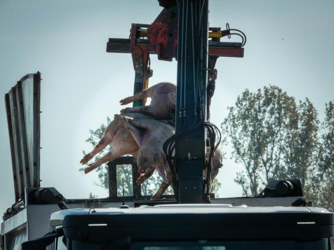 Op woensdag 3 mei 2023 kantelde rond 10u een vrachtwagen in de Abeelstraat in Ruiselede. Zo’n 150 varkens van 6 maanden oud zaten op elkaar gepropt tijdens een rit die heel waarschijnlijk zou eindigen in het slachthuis. Tientallen dieren overleefden de klap niet. De brandweer kwam ter plaatse om de dieren een voor een uit de vrachtwagen te takelen. De overlevende werden overgeladen naar een andere vrachtwagen om vroeg of laat gedood te worden. Animal Rights ging ter plaatse en kon beelden maken van de slachtoffers die omkwamen bij het zoveelste transportongeluk.
