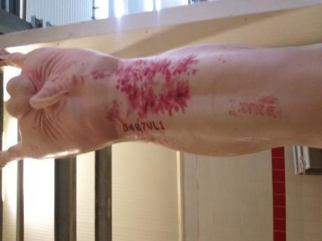 Er werden afdrukken gezien op de karkassen van een pneumatisch toestel voor het drijven van de dieren;