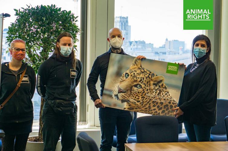 PETITIE GESLOTEN - Op 8 maart 2022 heeft Animal Rights de petitie met 37.000 handtekeningen overhandigd aan federaal minister van Milieu Khattabi. Op diezelfde dag werd het voorstel van resolutie dat de invoer van jachttrofeeën van bepaalde diersoorten verbiedt, bijna unaniem goedgekeurd in de Commissie voor Energie, Leefmilieu en Klimaat.