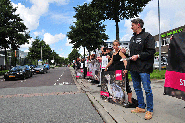 Molenaar: "Het enige moment dat een eend water ziet is wanneer het arme dier in een elektrisch waterbad wordt gestopt. We zijn tegenstander van het slachten van dieren en we blijven campagne voeren voor een verbod op de eendensector.”