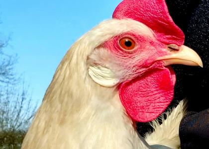 Mijn naam is Sophia: ik werd zes jaar geleden met Pasen gered en leef samen met mijn zusjes in vrijheid, ver weg van de eierindustrie.