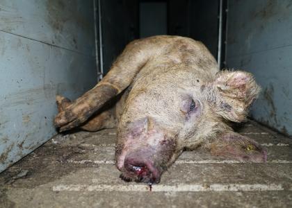 Oplossing: “… als een varken doodgaat […] laat ik het […] eerst een tijdje op de gang liggen om zeker te weten dat hij dood is voor ik hem aan de weg leg.”