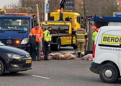 Op 25 november kantelde een vrachtwagen met 180 varkens in Den Bosch. [^1] De dieren kwamen op de weg en onder de vrachtwagen terecht, sommige dieren zaten gekneld in de vrachtwagen en stierven ter plekke. Animal Rights was ter plaatse om te documenteren en te livestreamen.