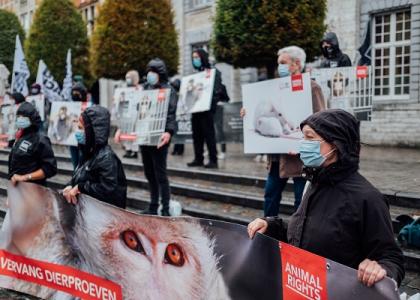 Afgelopen donderdag kwamen zo'n 40 activisten op de Oude Markt in Leuven, tegen dierproeven op apen aan de KU Leuven.