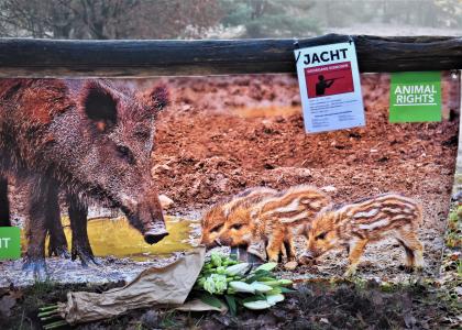 Tijdens een drukjacht op everzwijn in Zonhoven hield Animal Rights een stille wake voor de acht everzwijnen die de kogel kregen.