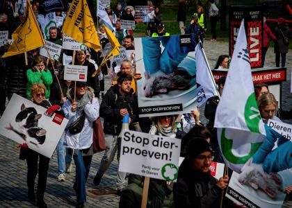 Op zaterdag 20 april hielden we naar jaarlijkse gewoonte een mars door het centrum van Rotterdam om op te komen voor proefdieren. Deze mars is nog steeds nodig!