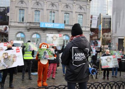 Animal Rights sluit zich aan bij andere actiegroepen in heel Europa en neemt deel aan een actieweek tegen de handel in apen voor onderzoek uit Mauritius.