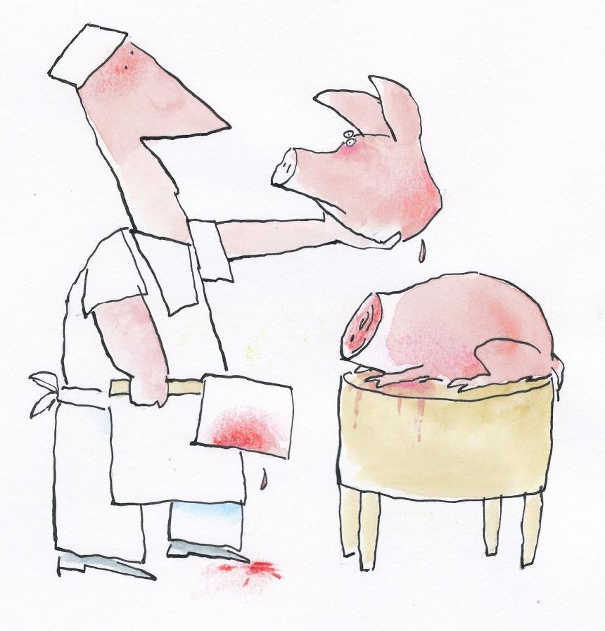 “Als ook varkensogen een spiegel van de ziel zijn wordt het tijd je aan te kijken,” luidt een strofe in het gedicht ‘Varkensoogjes’. Die woorden geven perfect weer hoe ver verwijderd we zijn geraakt van de dieren die - in stukjes en gewikkeld in cellofaan - in de koelvitrines van de supermarkten liggen en ons consumenten verleiden.