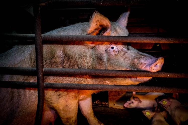 Dat varkens leven op roosters boven een gierput gevuld met hun eigen ontlasting is standaard in de varkensindustrie. Dat de dieren hun hele korte leven ammoniak dampen inademen ook. Dat zeugen hun biggen baren en zogen in krappe stangen-kooien evenzeer. Het couperen van staartjes en oormerken gebeurt routinematig. En dat de de stallen troosteloos, prikkelarm, geestdodend zijn is bijna overal hetzelfde. Net als de afwezigheid van daglicht en de mogelijkheid om naar buiten te gaan en te wroeten in aarde. “Zelfs zonder de misstanden in deze nieuwe beelden is het leven van varkens in Nederlandse stallen dieronwaardig,” zegt Animal Rights campagneleider Erwin Vermeulen.