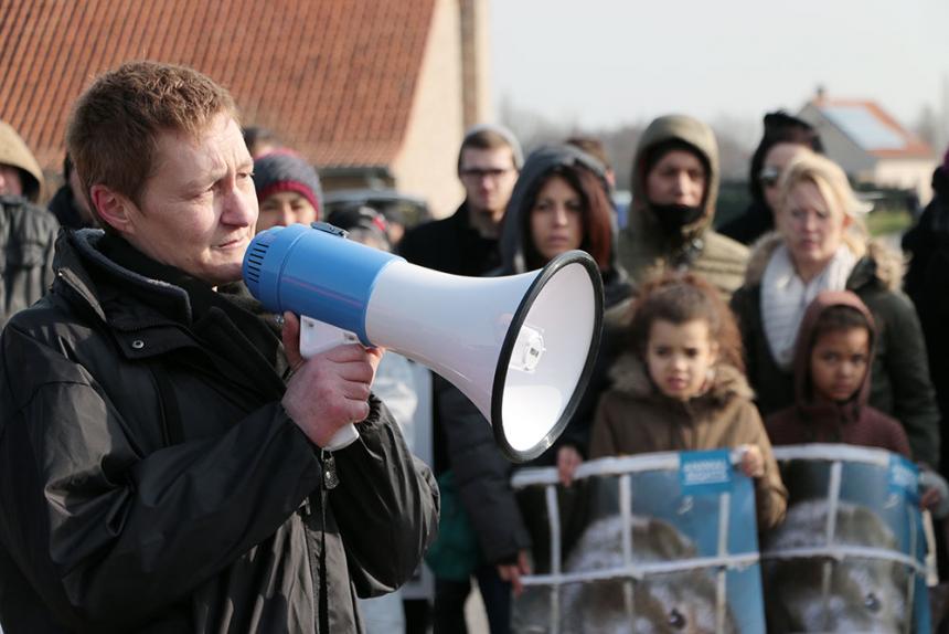 Onder toeziend oog van heel wat pers kwamen een honderdtal mensen afgelopen zaterdag bijeen voor de manifestatie in het West-Vlaamse Langemark. Drie weken eerder bracht Animal Rights schokkende undercoverbeelden naar buiten van de misstanden die plaatsvinden in de voormalige steenbakkerij.