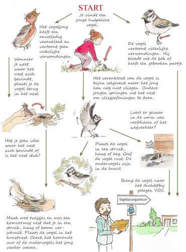 De Vogelbescherming maakte dit handige schema voor wanneer je nestjongen in nood vindt: